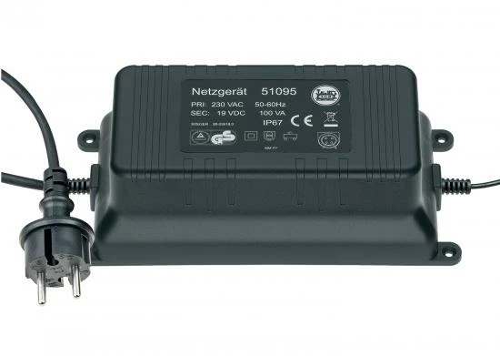 Weatherproof (IP 67) switched mode power pack for supplying current to the 51079 electronic locomotive controller. This unit can also be used to supply current to other components – such as the CS 2 or the CS 3.