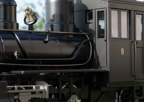 This is a model of the Forney steam locomotive, road number 9, of the Wiscasset Waterville & Farmington Railway, as it is currently used on the museum railroad of this name in the East of the USA. The paint and lettering are prototypical for Era VI. Both wheelsets are driven by a powerful, ball bearing Bühler motor. The locomotive has an mfx/DCC decoder with many light and sound functions as well as a digitally controlled smoke unit. Length over the couplers 45 cm / 17-3/4″.